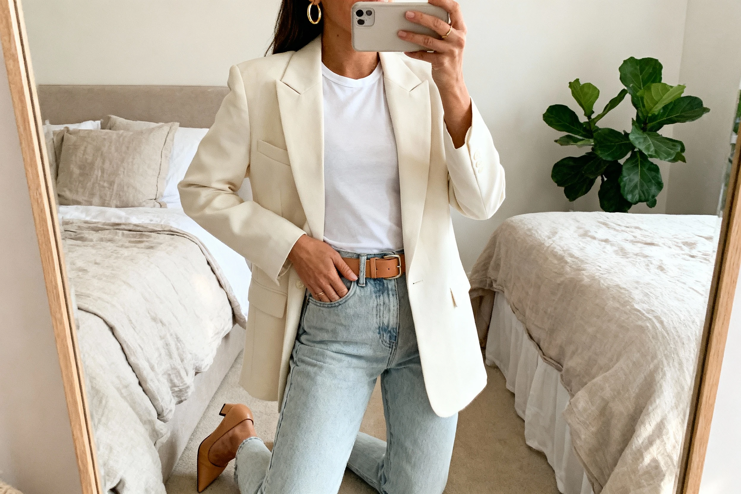 Below are nine blazer outfits that nail polish-meets-comfort. We’re talking timeless combos, trendy twists, and pieces you probably already own. Ready to build your personal power uniform—without looking like everyone else? Let’s do it.