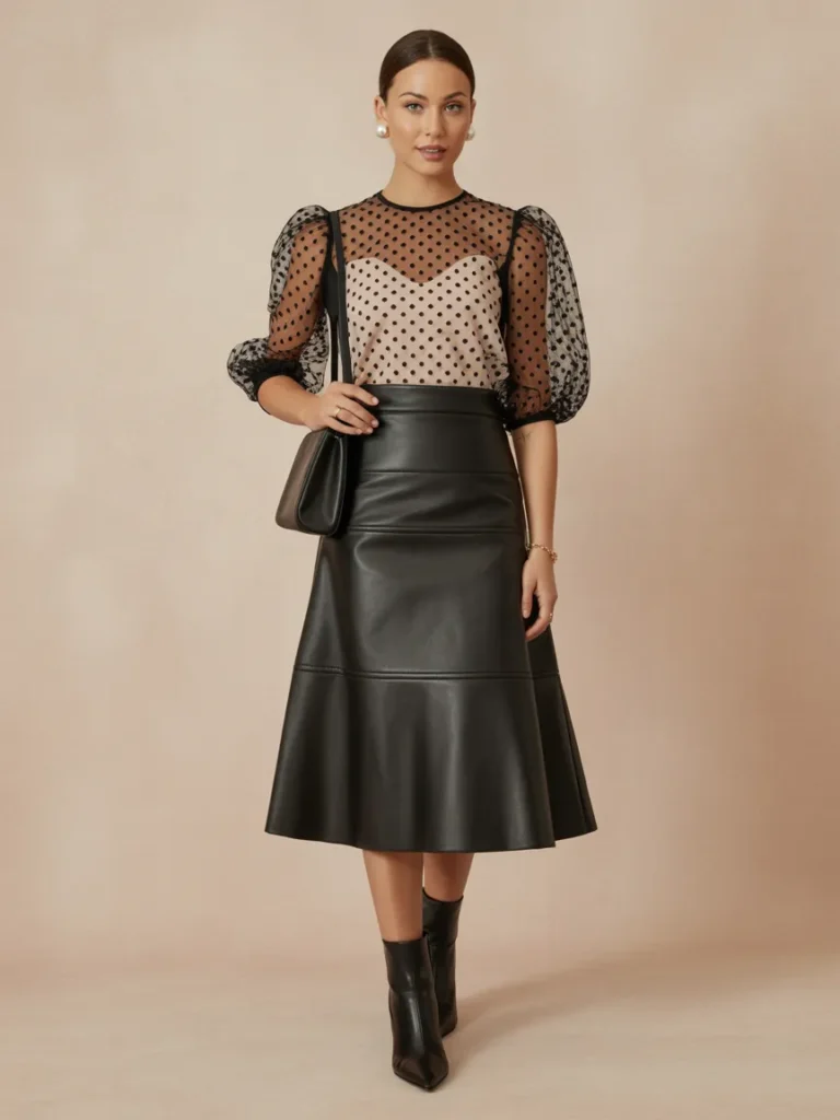 Flirty dotted mesh plus smooth leather equals instant chic. The textures balance each other and feel unexpected in the best way. You’ll look like you planned your outfit a week in advance.