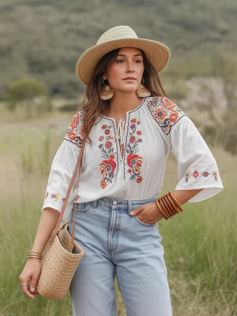 8. The Embroidered Folkloric Blouse That’s a Vacation in Itself