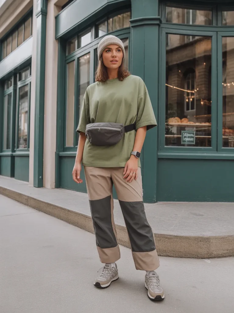 Pick trail pants with a tapered ankle to avoid bulk. Wear the belt bag high across the chest to define shape. Mix earth tones—moss, sand, stone—for an intentional palette that still feels rugged.
