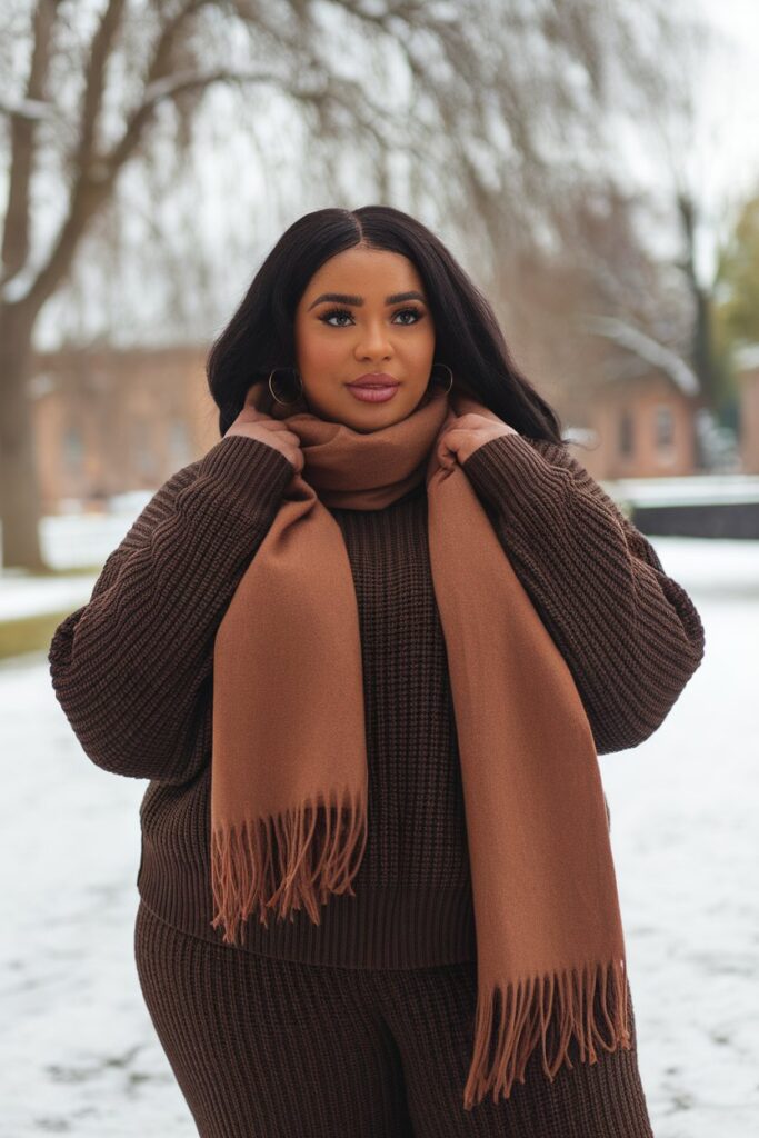 - Oversized scarf in same or deeper tone