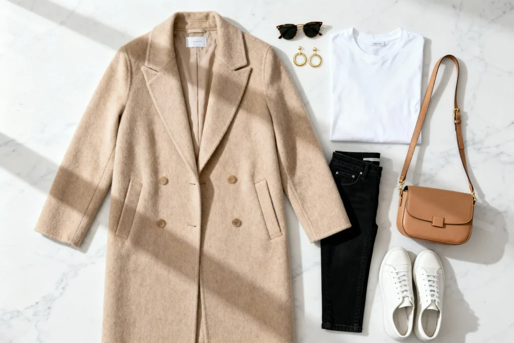 - Classic camel coat (doesn’t have to be designer—just well-fitted)